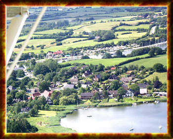 Missunde aus der Luft (Sommer 2000)Als "schlimme Feinde" werden die Wenden genannt die bei uns an der Schlei als Seeräuber die Küsten unsicher machten. Herzog Knud Laward schlug sie alsbald in die Flucht. Zum Schutze von Schleswig, es war seine Residenzstadt, legte er an der Schlei verschiedene Befestigungen an, so auch eine im Jahre 1115 bei "Kielfoot" oder "Versund" (siehe auch Burg).