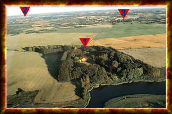 Links: Gut Ornum (1) am Ornumer Noor, im Hintergrund